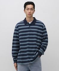 멀티 스트라이프 긴소매 폴로 셔츠 [네이비]