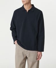 슬릿 넥 긴소매 피케 폴로 셔츠 [네이비]