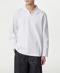 슬릿 넥 긴소매 피케 폴로 셔츠 [화이트]