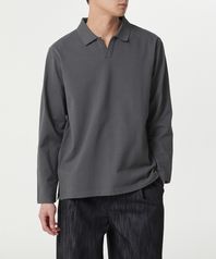 슬릿 넥 긴소매 피케 폴로 셔츠 [건메탈]
