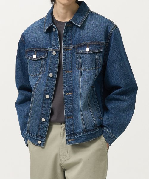 워시드 데님 트러커 자켓 (MID BLUE)