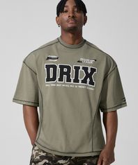 오버로크 스티치 오버핏 하프 슬리브_카키
