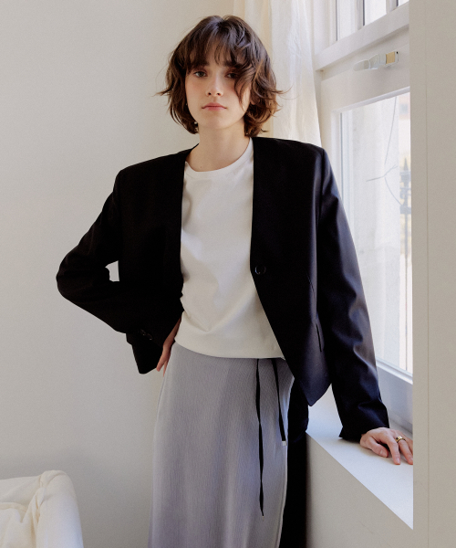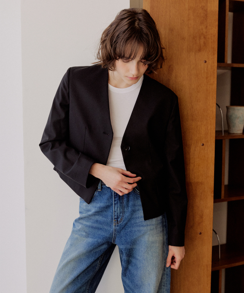 우먼즈 칼라리스 3버튼 크롭 블레이저 [블랙]