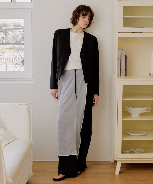 팬던트 디테일 플리츠 스커트_그레이
