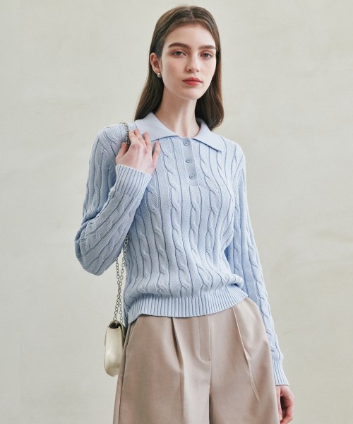 스크류 카라 니트 [스카이]