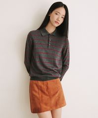 모노 스트라이프 카라 니트 [차콜]