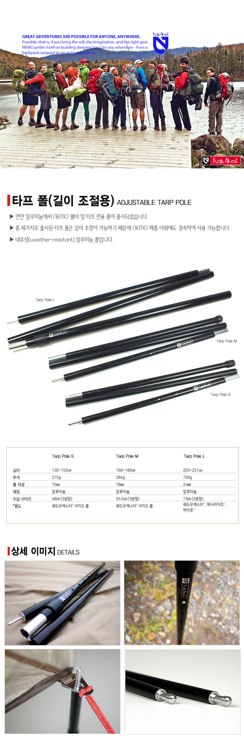 니모(NEMO)는 미국 프리미엄 캠핑 기어 전문 브랜드입니다. 지금껏 누구도 만들지 못했던 편리한 제품을 디자인합니다. 더 많은 시간과 체력을 탐험과 휴식에 전념하고 지속 가능한 환경이 유지될 수 있도록 탄소 배출 저감에 진심인 프리미엄 캠핑 기어 브랜드입니다.