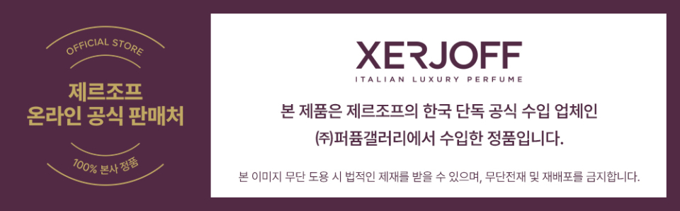 제르조프(XERJOFF)는 이탈리아의 역사와 자연의 진정한 아름다움을 결합하여 화려한 향수의 세계를 선보이는 이탈리아 럭셔리 니치 퍼퓸 하우스입니다. 장인 정신을 바탕으로 보석 형태의 고급 유리병과 최고급 원료로 만든 향수를 통해 자연의 진정한 아름다움을 선사합니다.