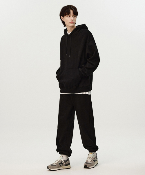 [논기모or기모] 에센셜 오버핏 후드 스웨트 셔츠 블랙