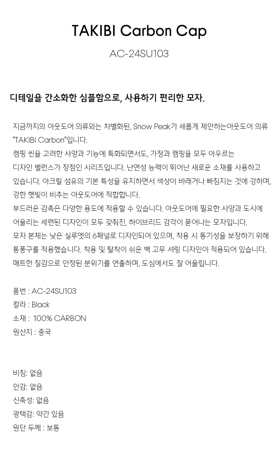 TAKIBI 카본 캡 - 블랙 / AC-24SU1030BK