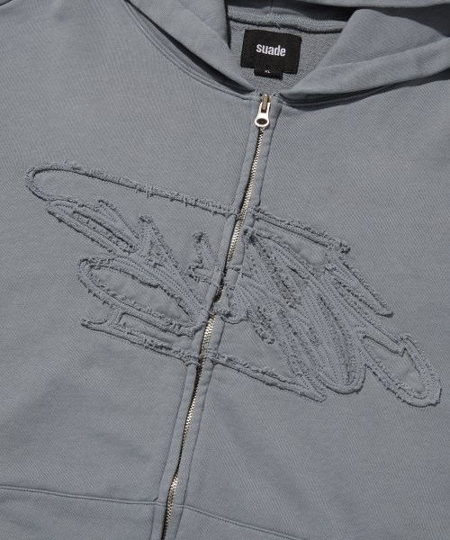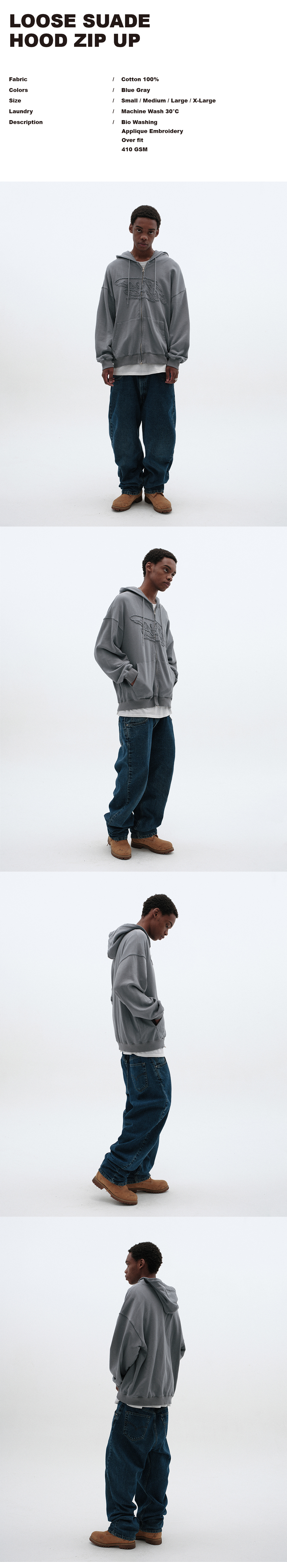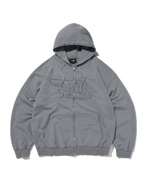 LOOSE SUADE HOOD ZIP UP [BLUE GRAY]