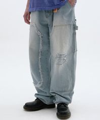 DAMAGED DOUBLE KNEE PANTS [LIGHT BLUE]
