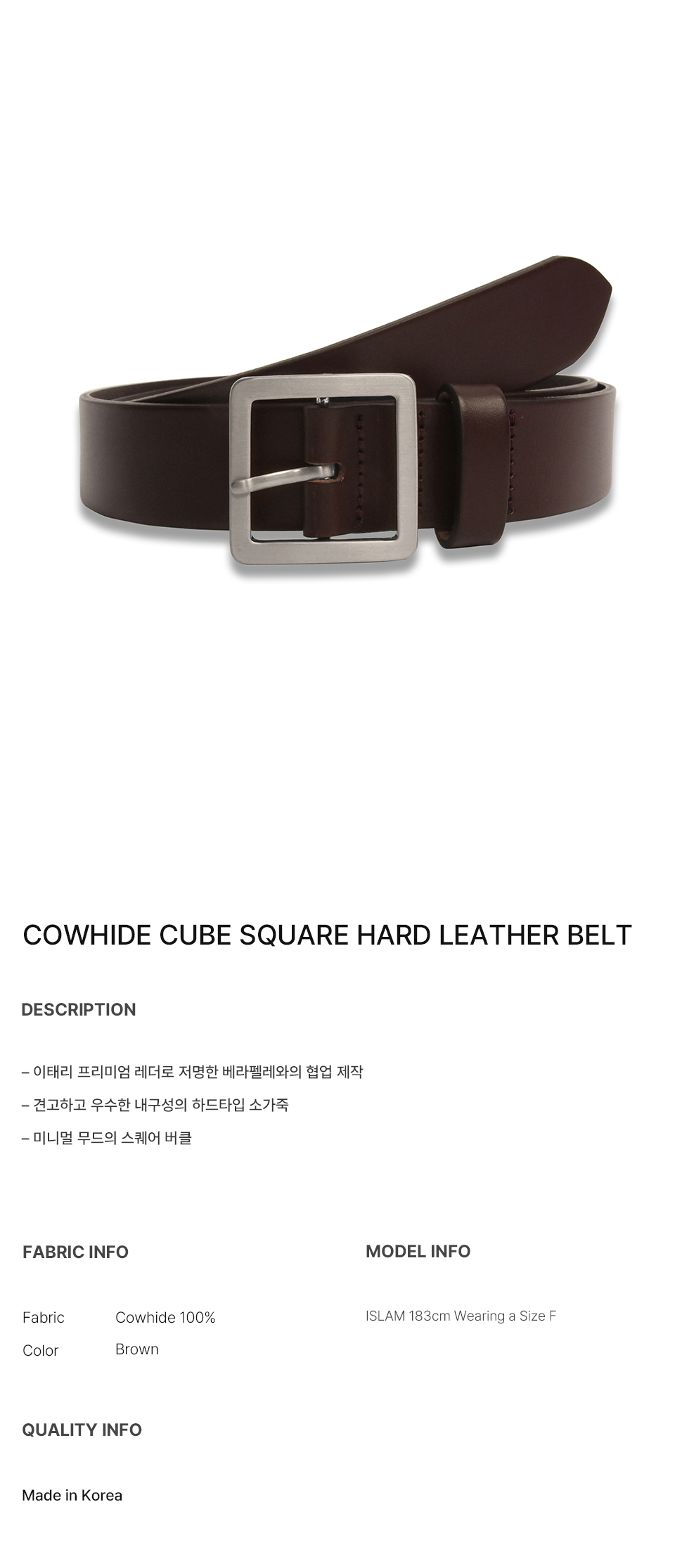 카우하이드 큐브 스퀘어 하드레더 벨트 BROWN