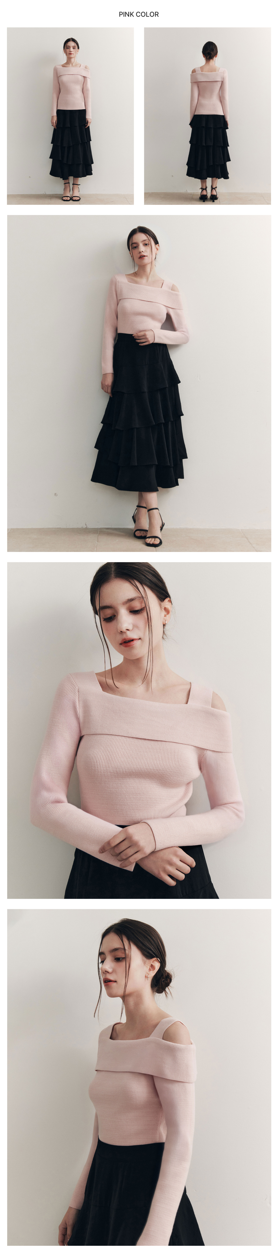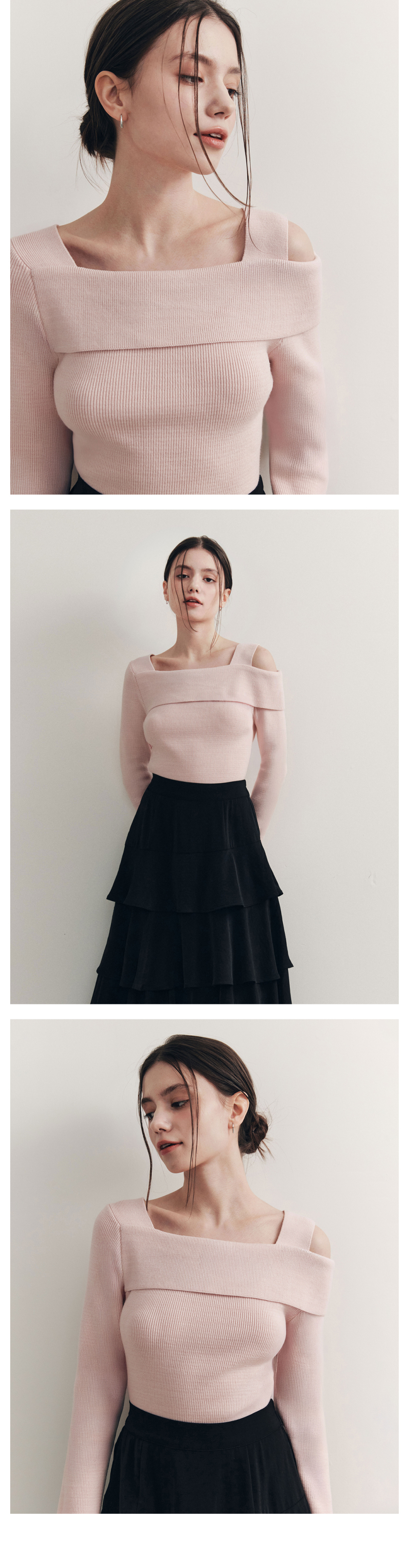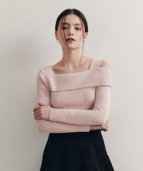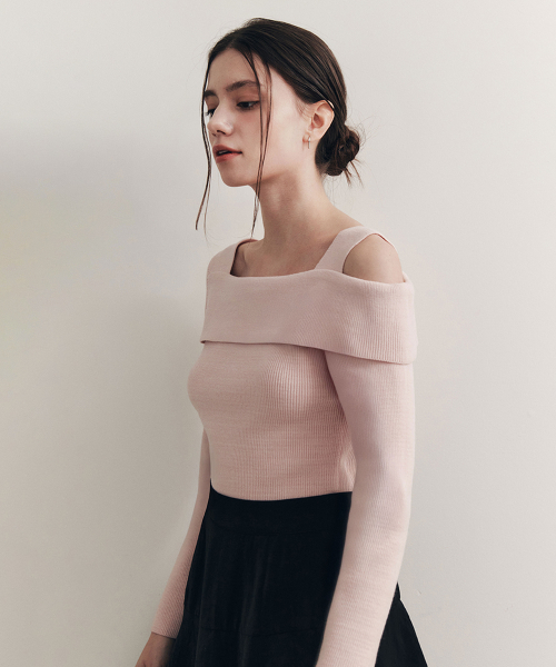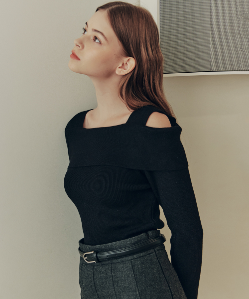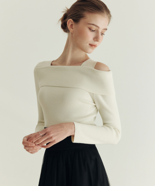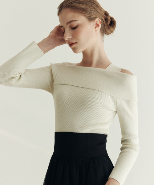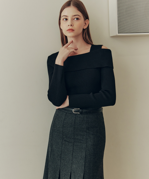 [3컬러] 솔리드 언발란스 오프숄더 스웨터