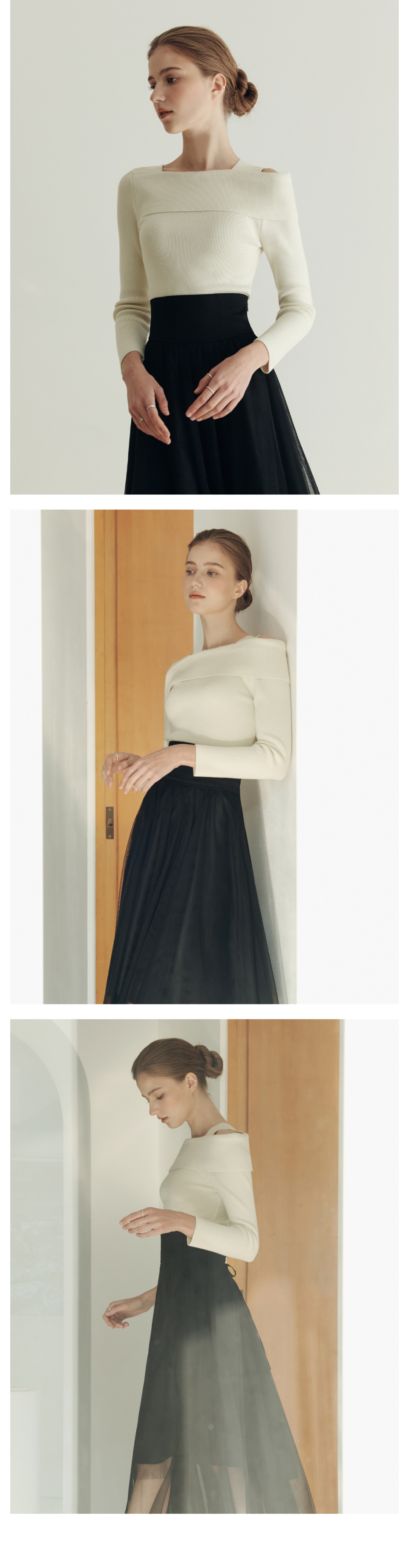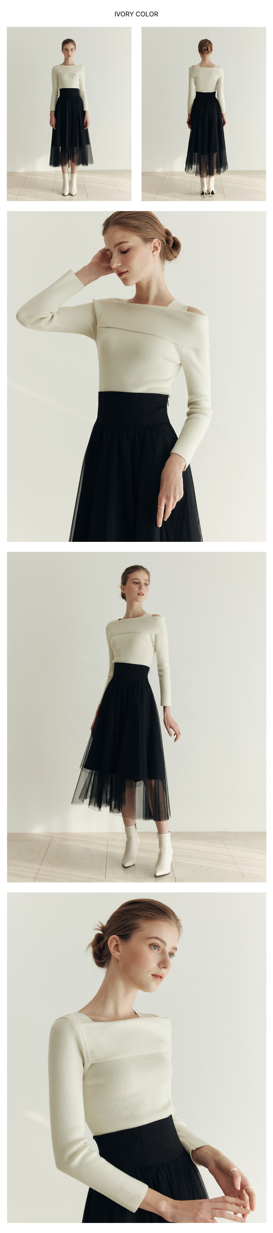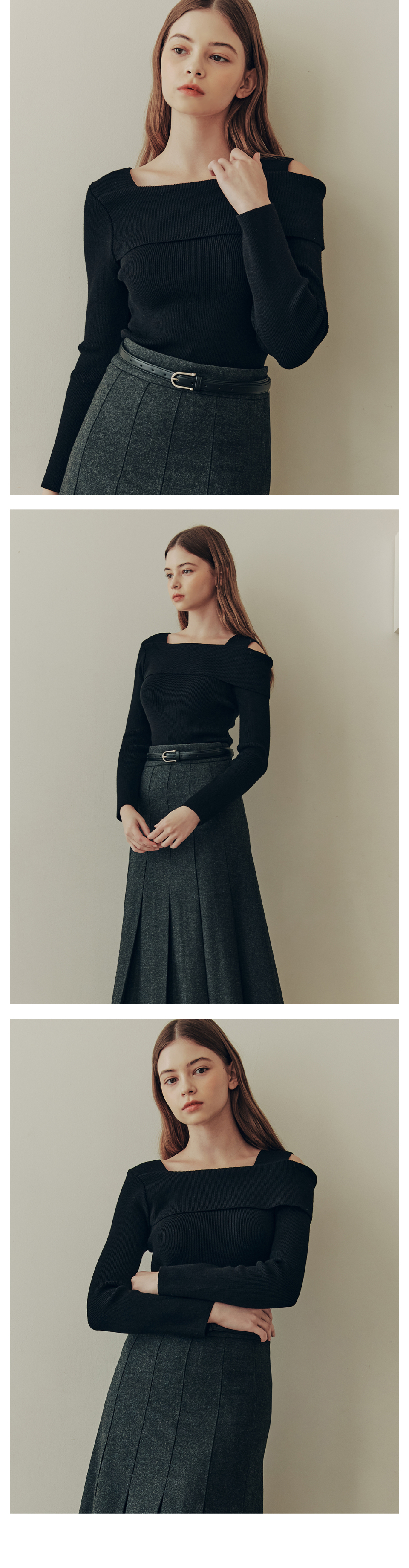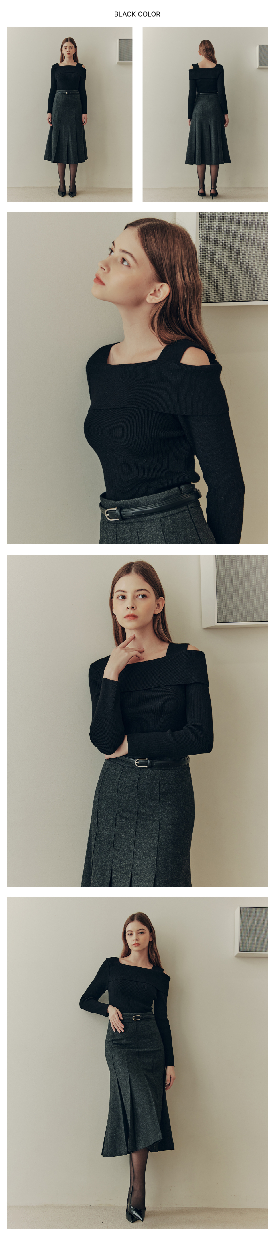 [3컬러] 솔리드 언발란스 오프숄더 스웨터