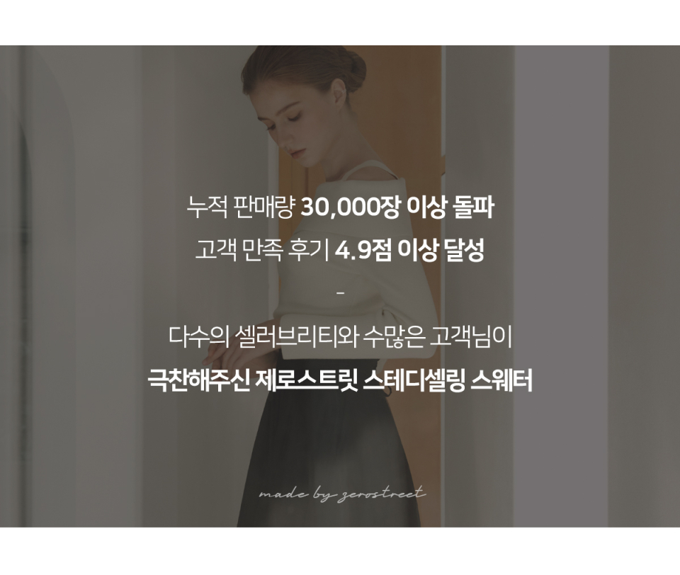 제로스트릿(ZERO STREET)은 사랑스러운 컬러에 아름답고 우아한 디자인 감성을 더해 매 시즌 새로운 컬렉션과 스토리를 선보이는 브랜드입니다.