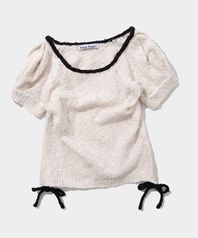 사이드 리본 스트랩 포인트 퍼프 반팔 니트 탑 [아이보리]