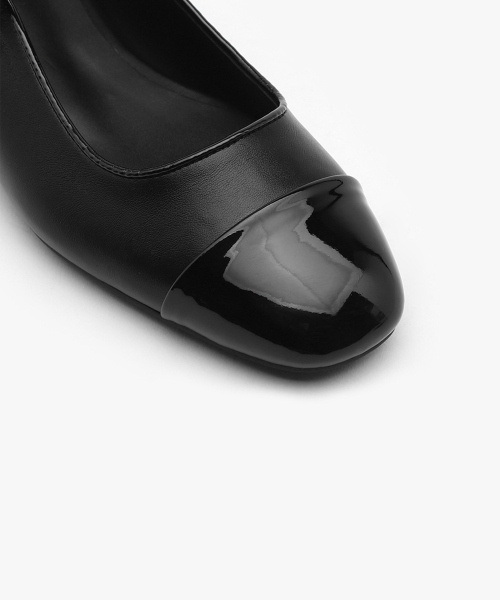 부드러운 인조가죽과 광택감이 있는 에나멜 소재를 적용하여 편안한 착화감과 클래식하고 여성스러운 분위기로 스타일링 가능합니다.