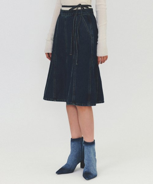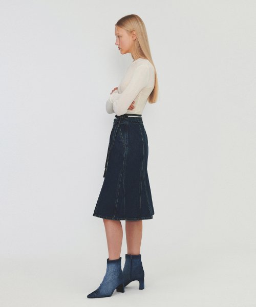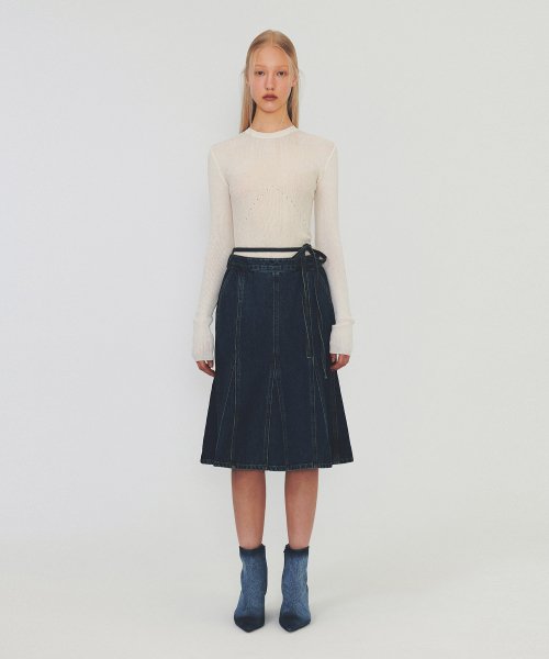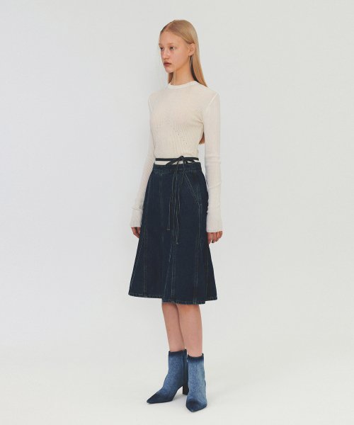 - 벨트 홀 디자인에 스트랩으로 허리 매듭 포인트.