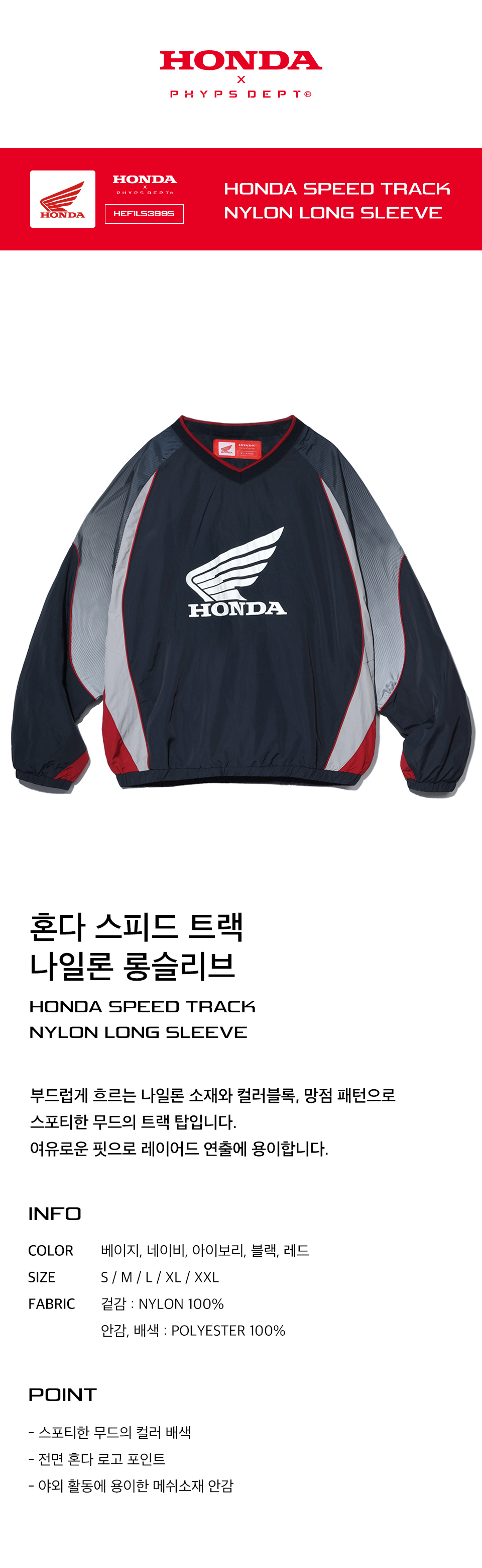 혼다 모터사이클 어패럴(HONDA MOTORCYCLE APPAREL)은 피지컬 디파트먼트(PHYPS)가 혼다 모터사이클(Honda Motorcycle)과 공식 라이선스 계약을 통해 정식으로 전개하는 모터사이클 어패럴 컬렉션 브랜드입니다.