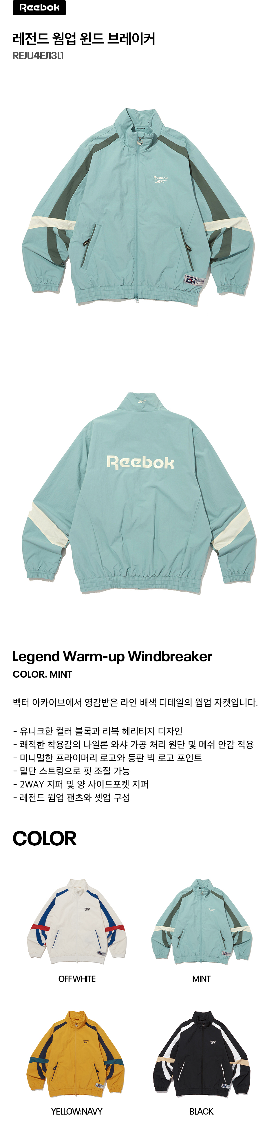 레전드 웜업 윈드 브레이커 - 민트
