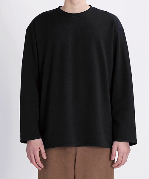레이어드 크루넥 롱슬리브 무지 티셔츠 블랙