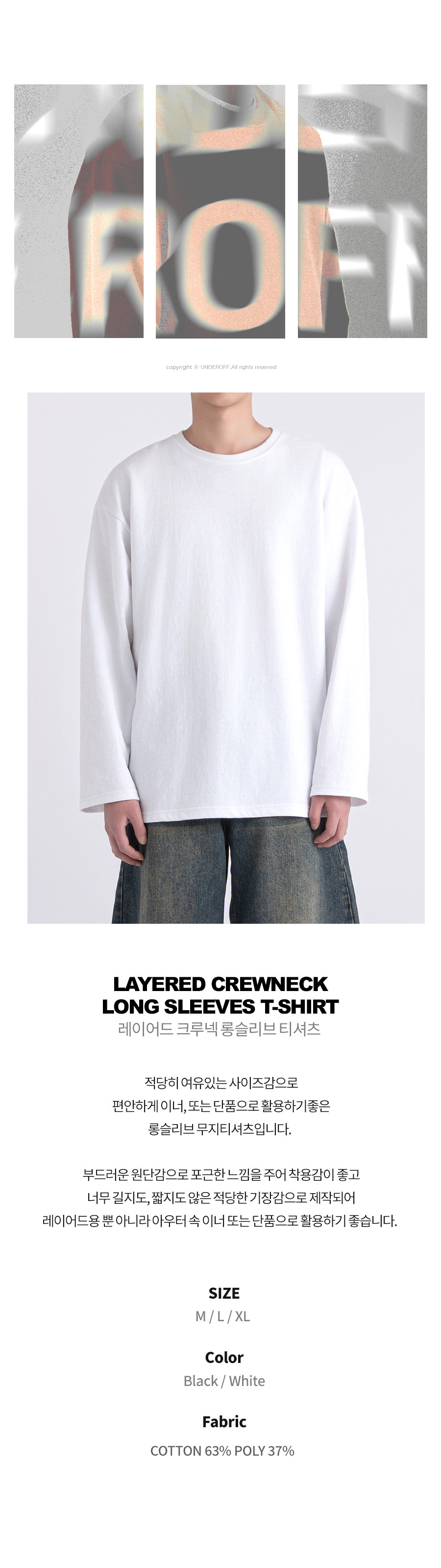 레이어드 크루넥 롱슬리브 무지 티셔츠 화이트