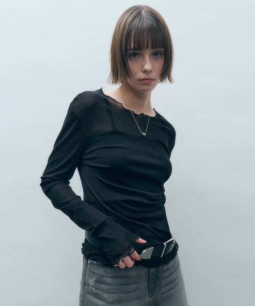 사이드 셔링 메쉬 롱슬리브 블랙 MDTS061BLACK