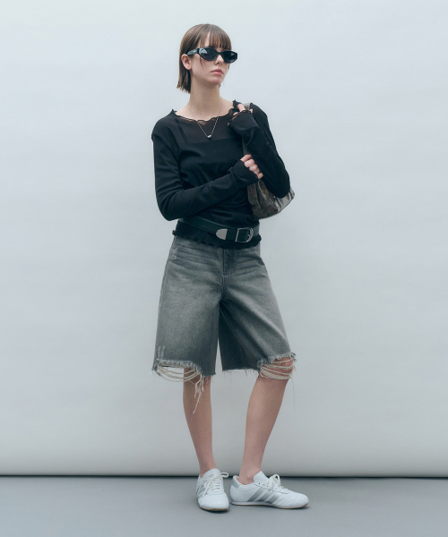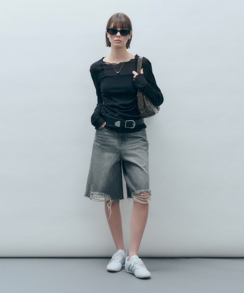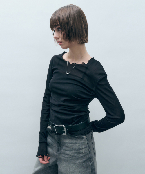 사이드 셔링 메쉬 롱슬리브 아이보리 MDTS061IVORY