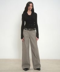 우먼즈 버티컬 스트라이프 와이드 팬츠 [그레이쉬 베이지]