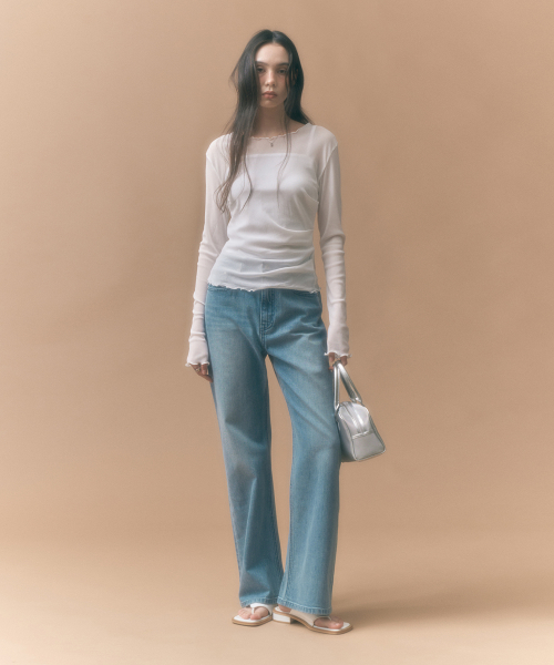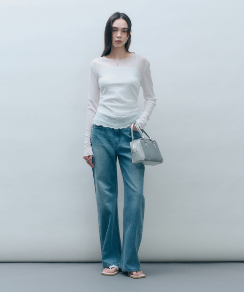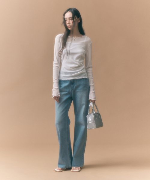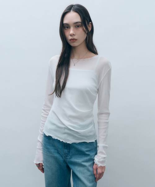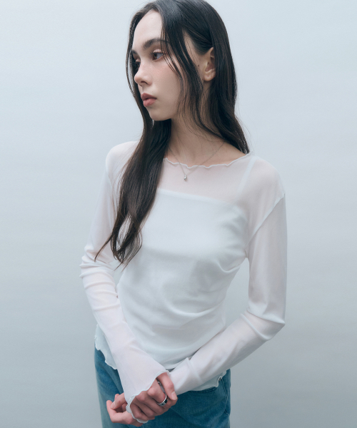사이드 셔링 메쉬 롱슬리브 아이보리 MDTS061IVORY