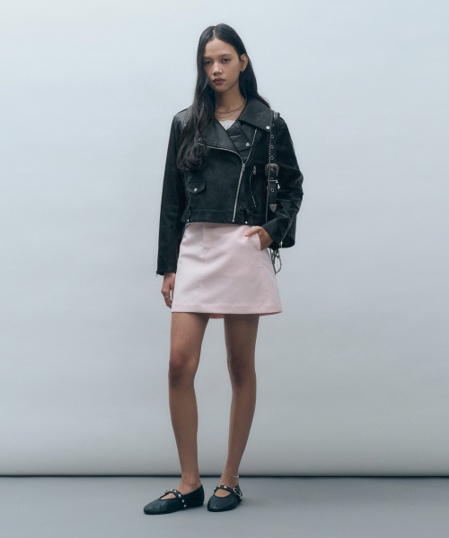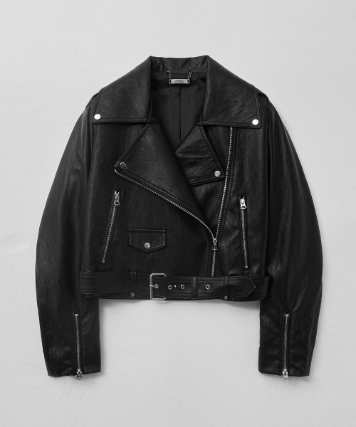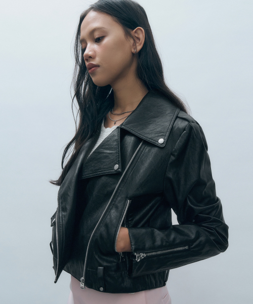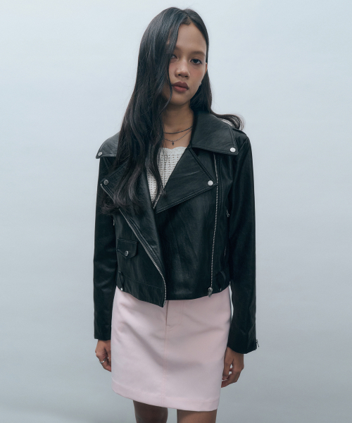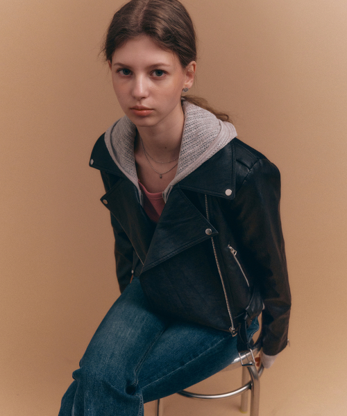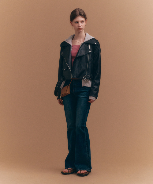 데님 믹스 페이크 레더 자켓 블랙 MDJK027BLACK