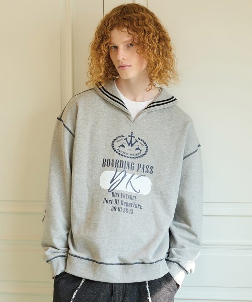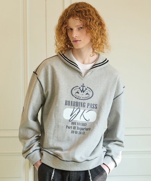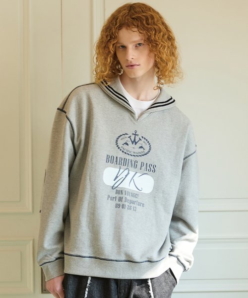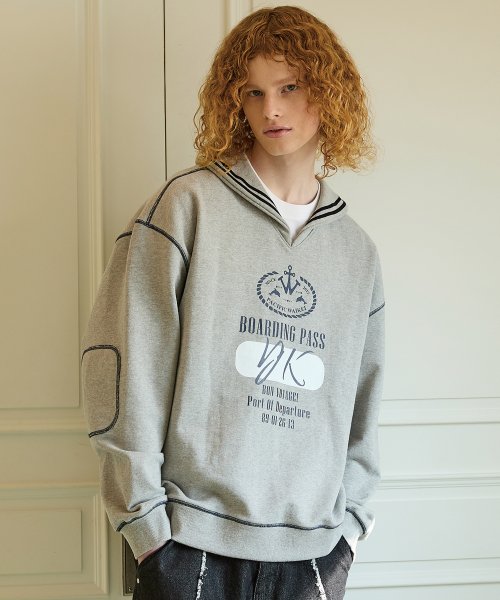 레더 패치 데님 카라 럭비 맨투맨_카키