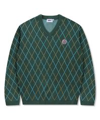 XTK171 아가일 브이넥 풀오버 니트 (GREEN)