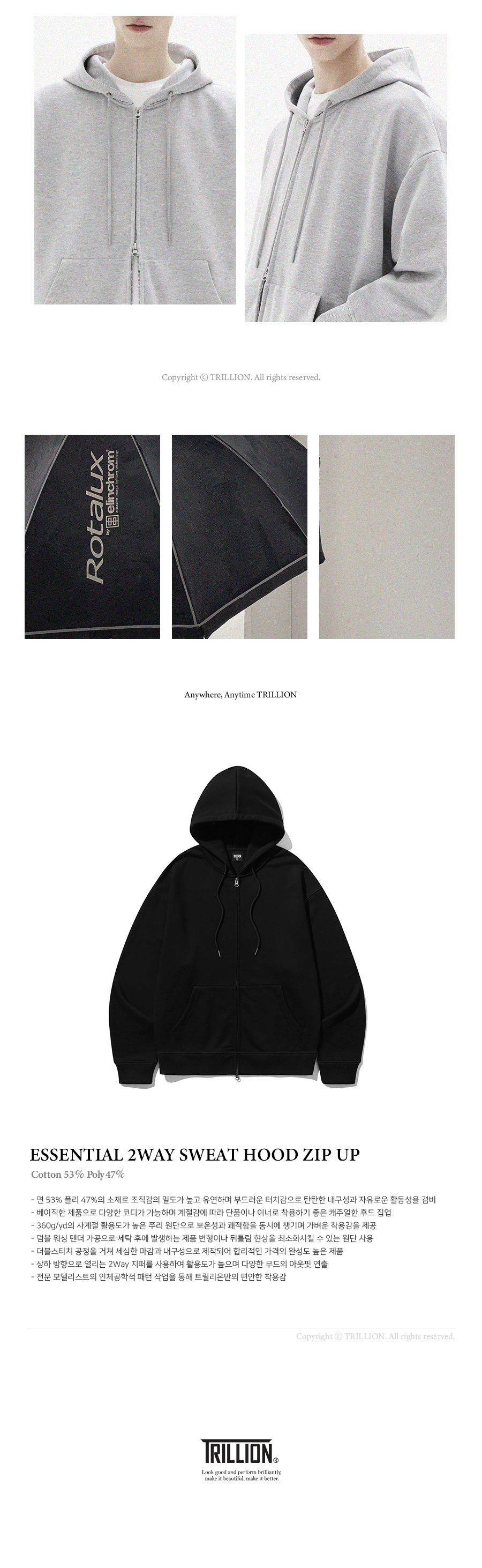 에센셜 2WAY 스웨트 후드 집업 (BLACK)