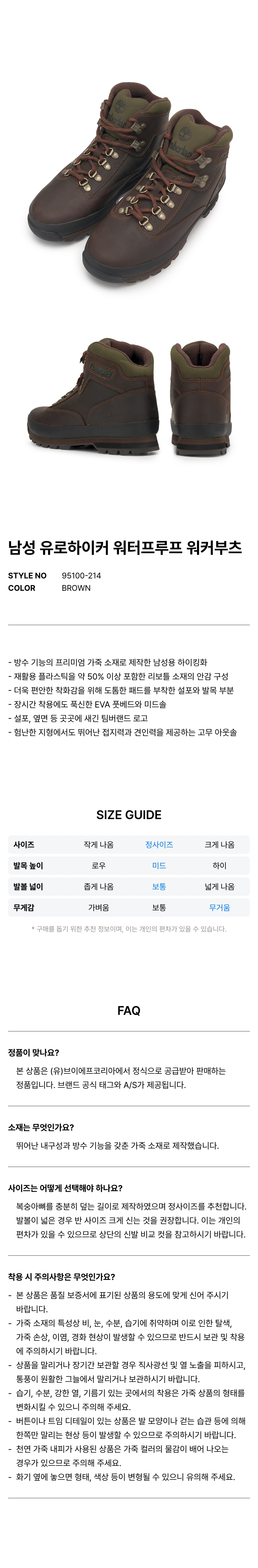 [ICON] (남성) 유로하이커 워터프루프 워커부츠 - 브라운 / 95100-214