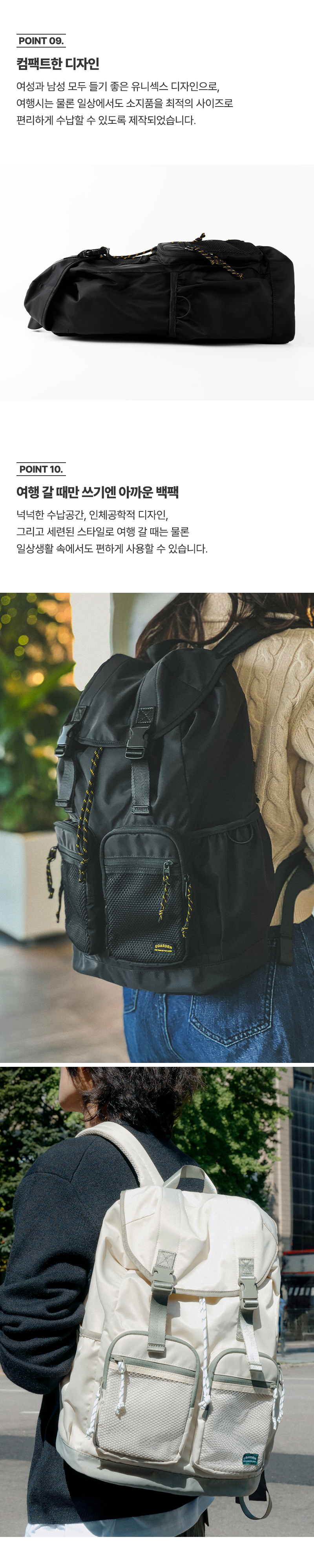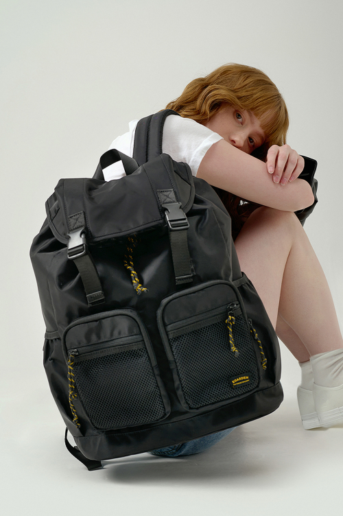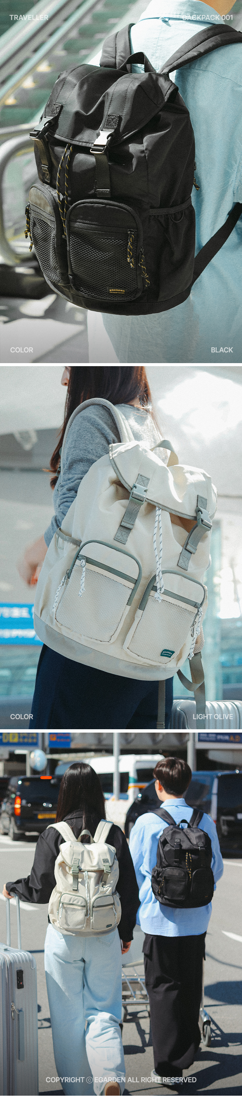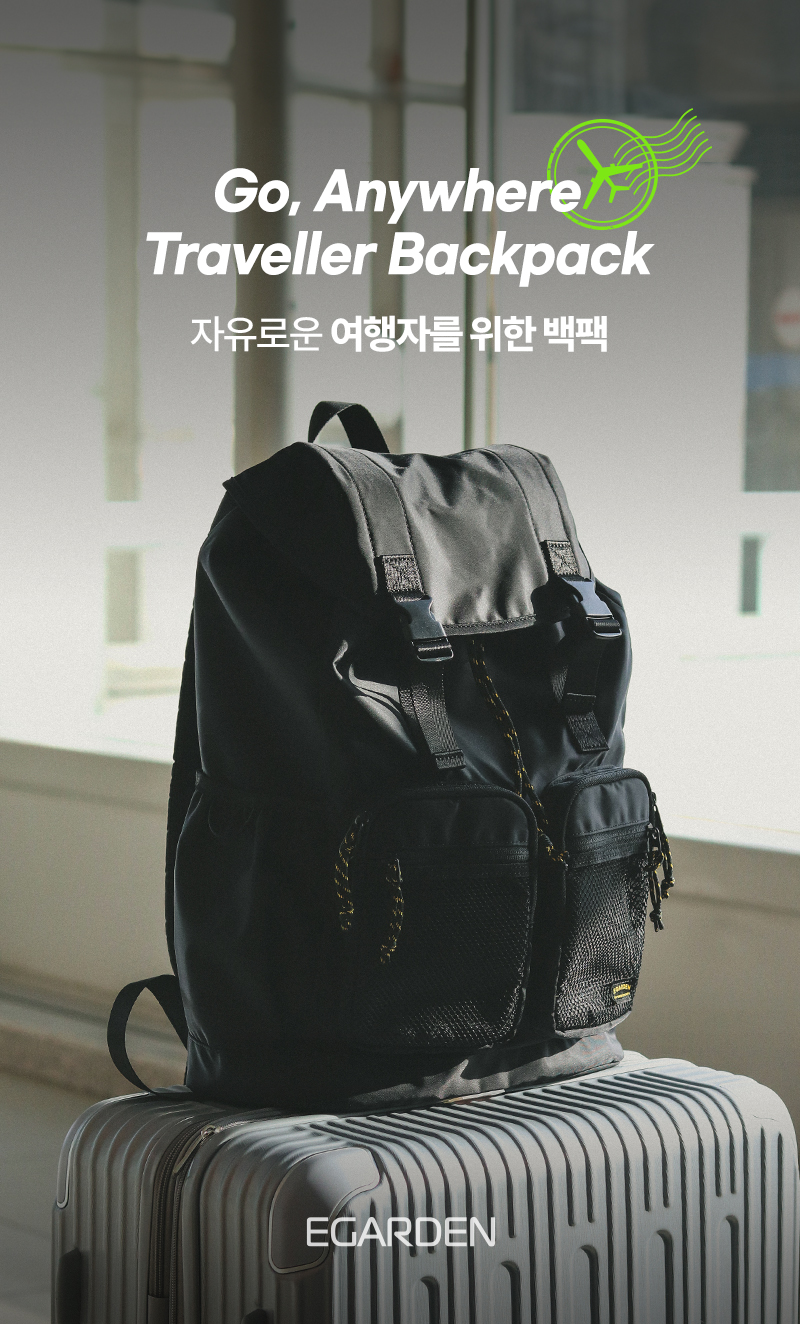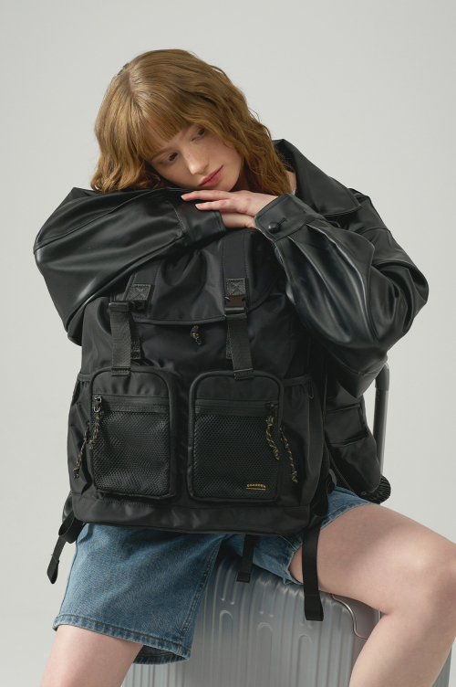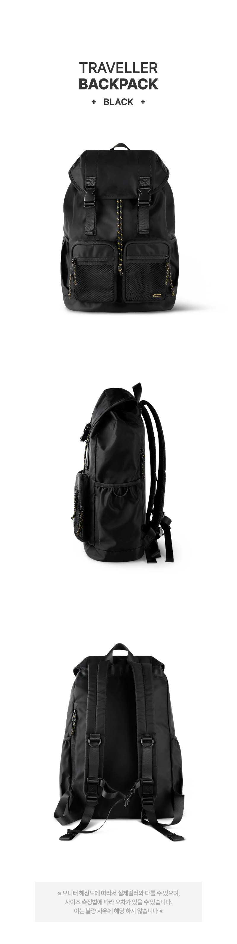 트래블러 백팩 캐주얼 클래식 여행 스트링 버클 백 - 블랙