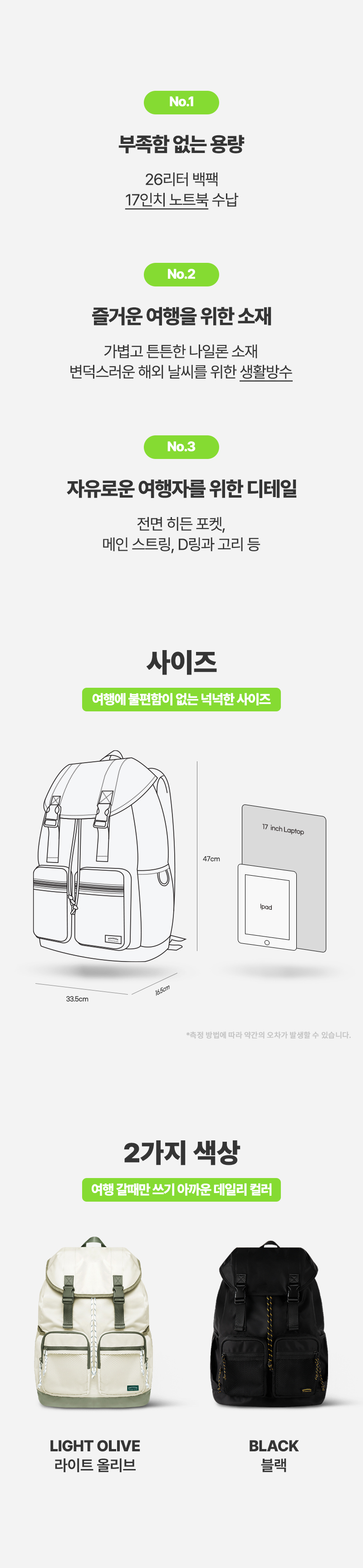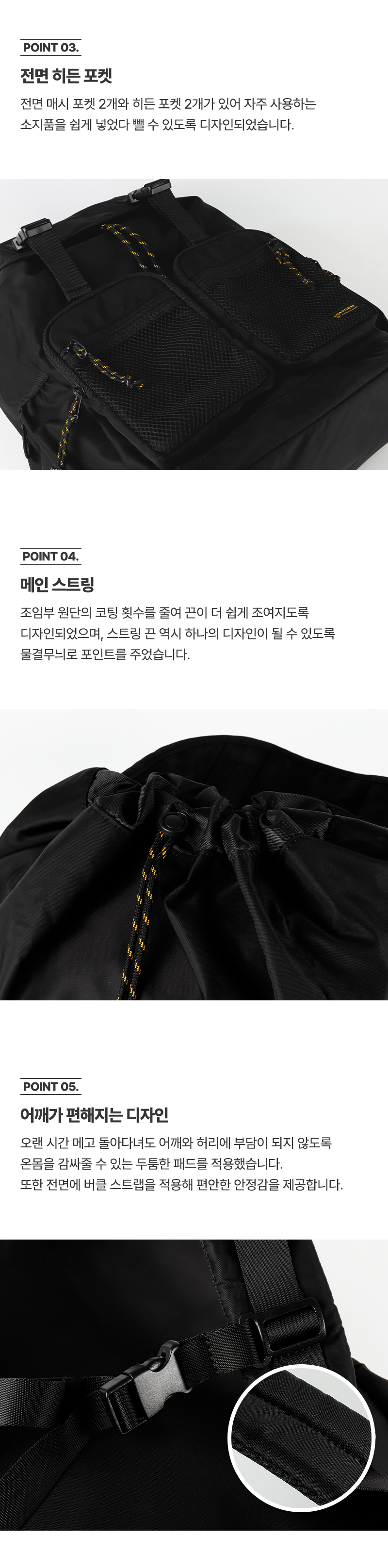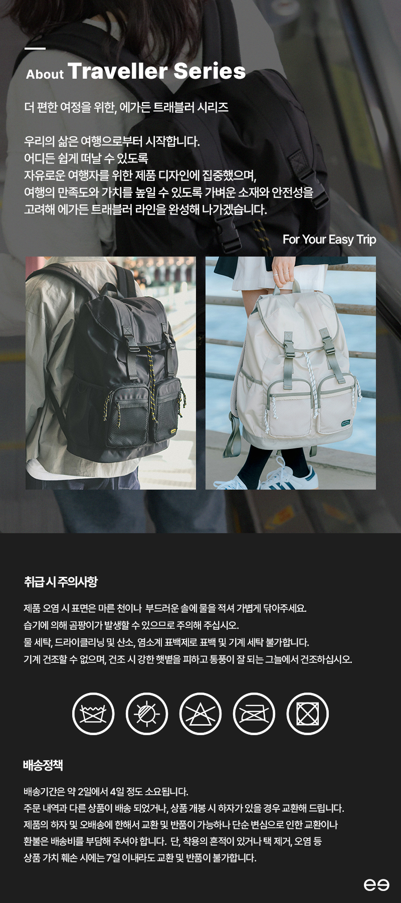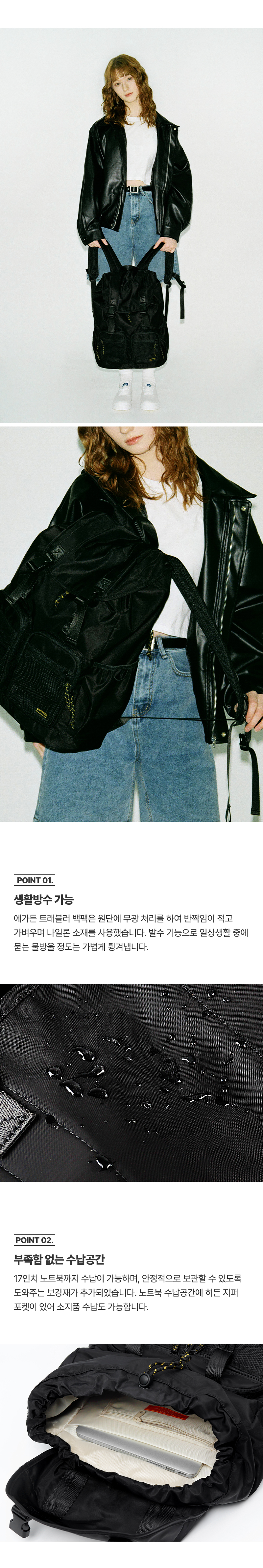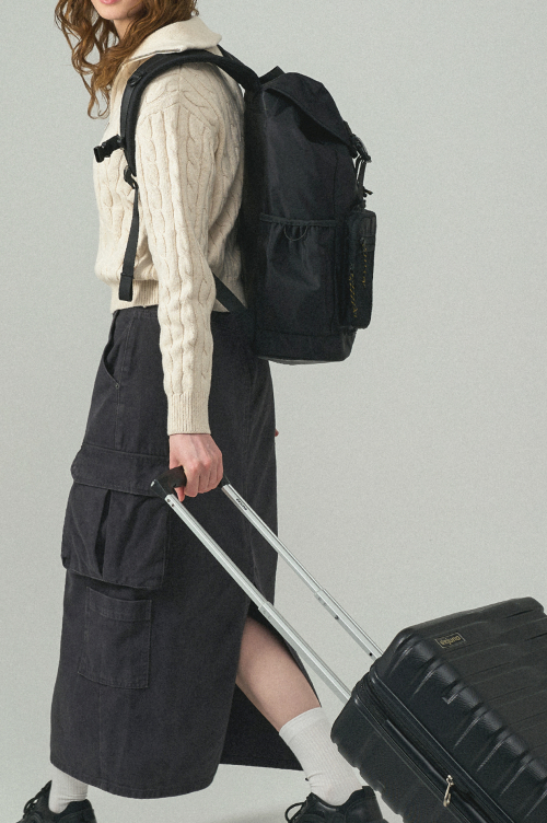 트래블러 백팩 캐주얼 클래식 여행 스트링 버클 백 - 블랙