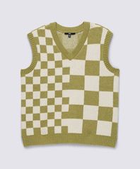 코트야드 체커 스웨터 베스트 - 그린 올리브 / VN000F6WBD41