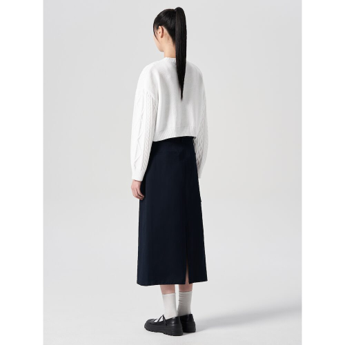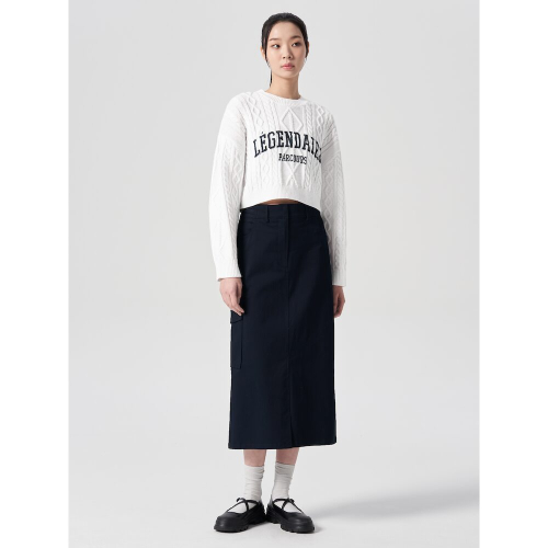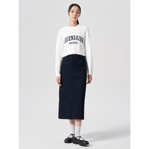 옆 주머니 디테일이 포인트인 미디 기장의 스커트입니다. 깊은 색감이 룩에 차분함을 더해주며 뒤 중심에 절개 디테일이 있어 보다 편한 활동이 가능합니다. 니트부터 블라우스까지 다양한 상의와 연출하기 좋은 아이템입니다.
