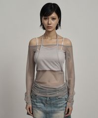 Gray angel wing mesh long sleeve
