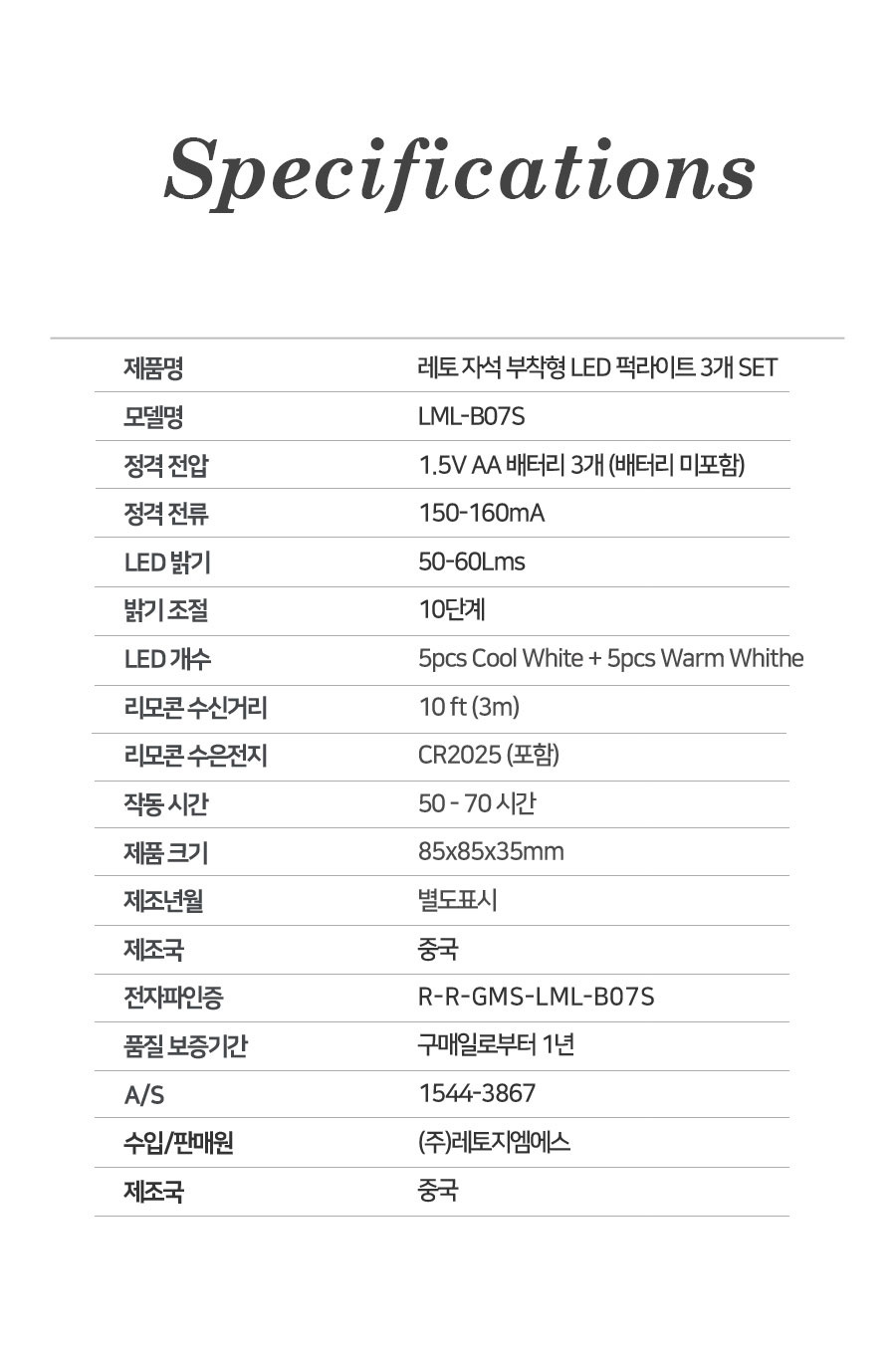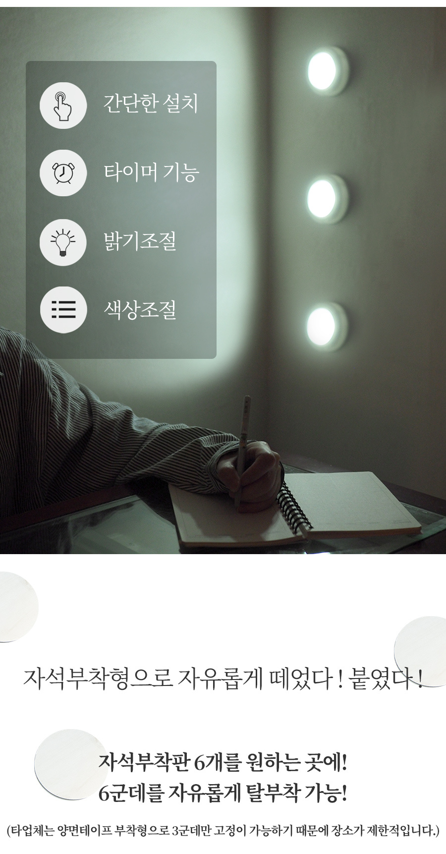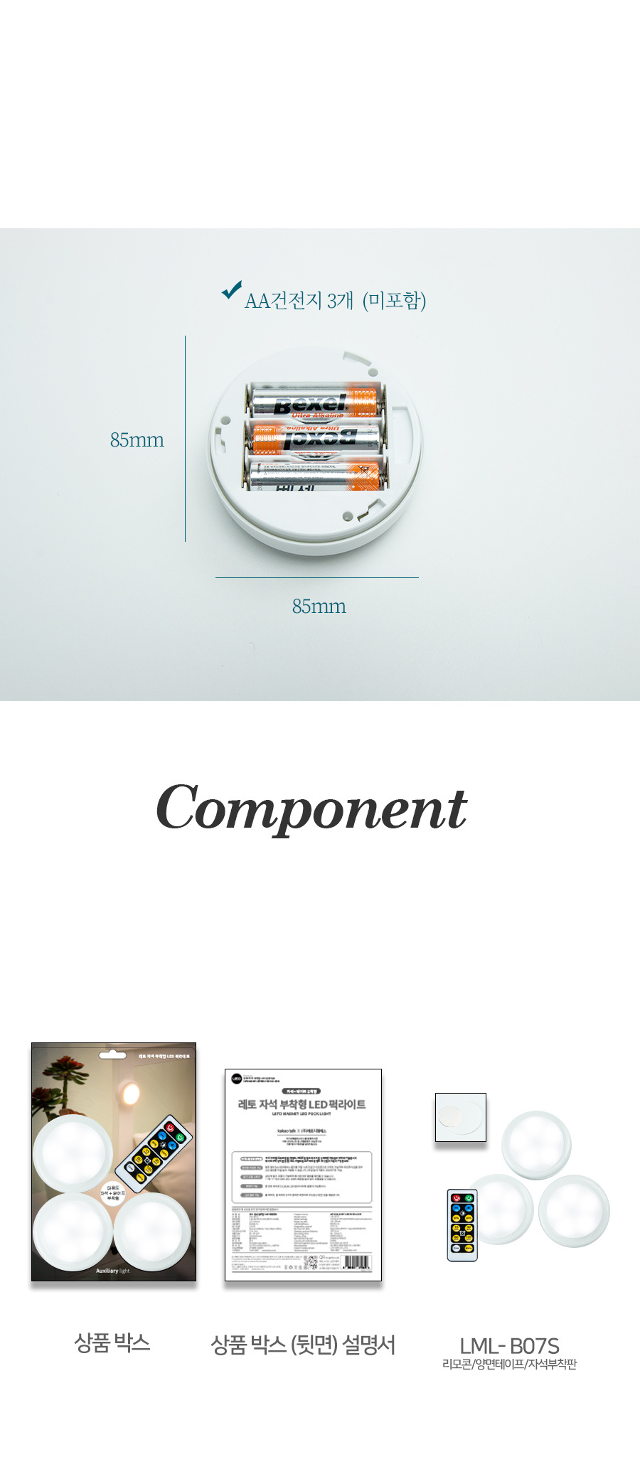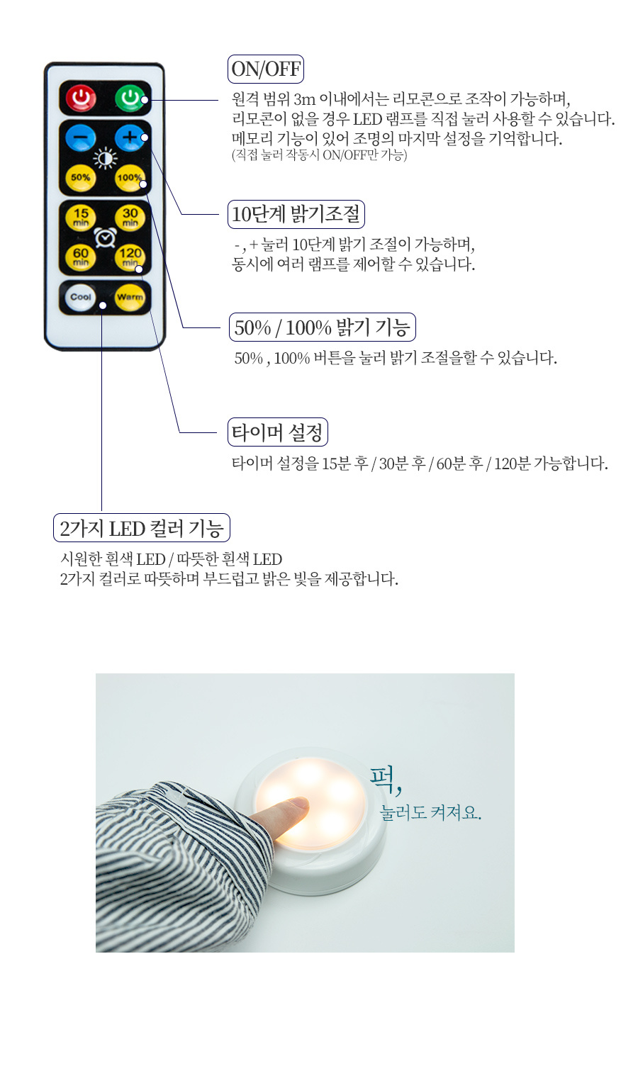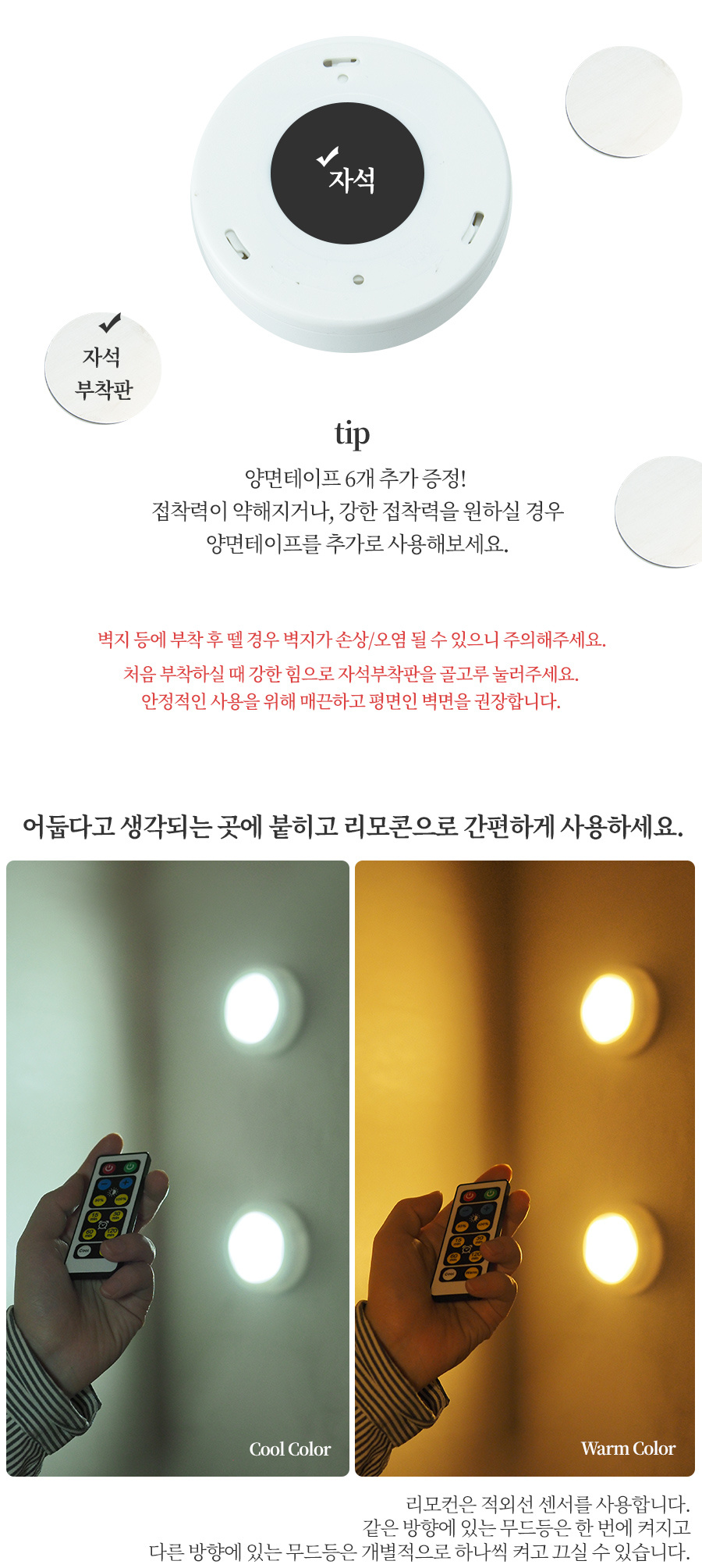 퍽 LED 조명 무드등 (3개 리모컨 세트)
