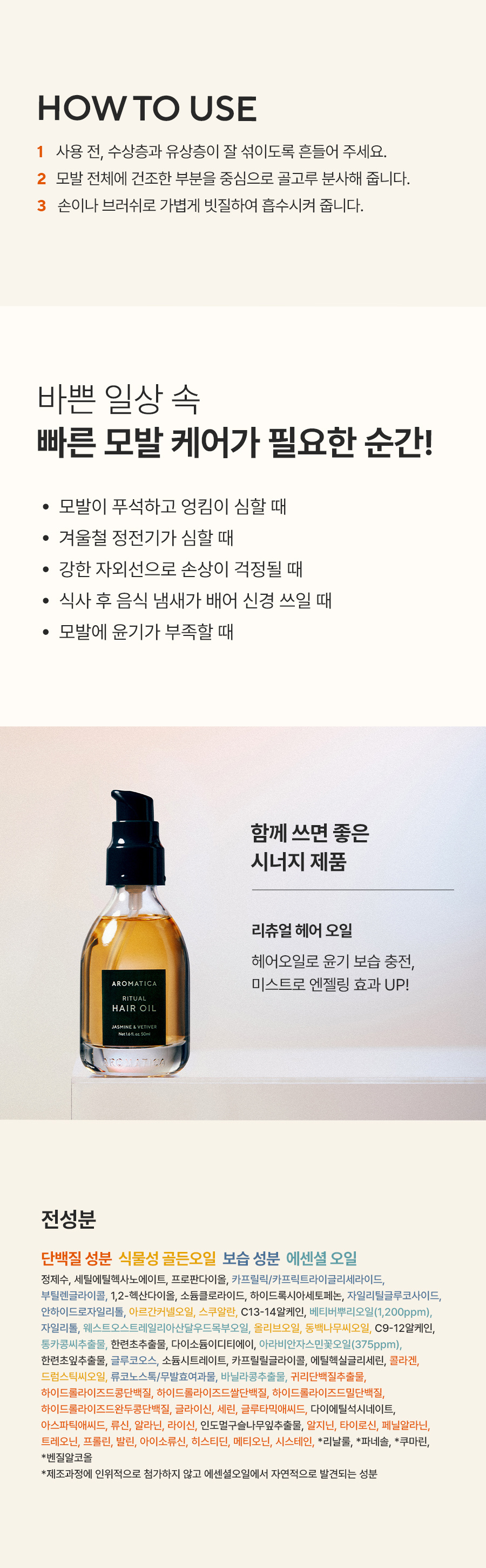 [내추럴 헤어 퍼퓸]아로마티카 리플레니싱 헤어 미스트 자스민&베티버 100ml
