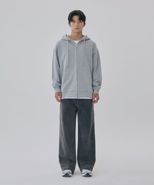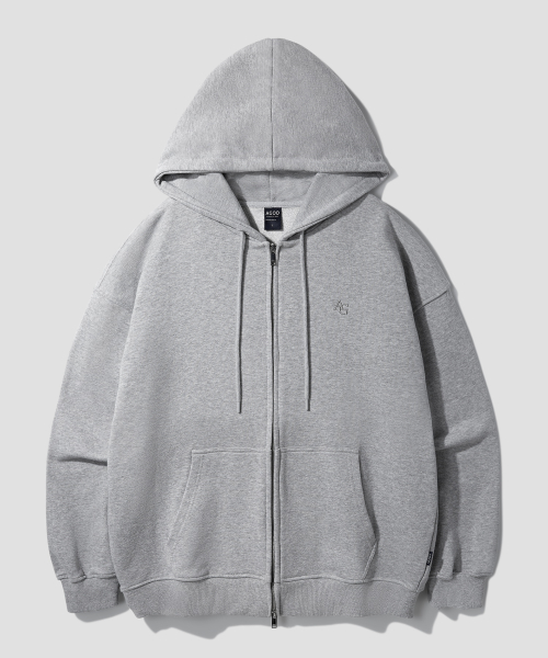 2_WAY 시그니처 자수 스웨트 후디드 집업 [그레이]