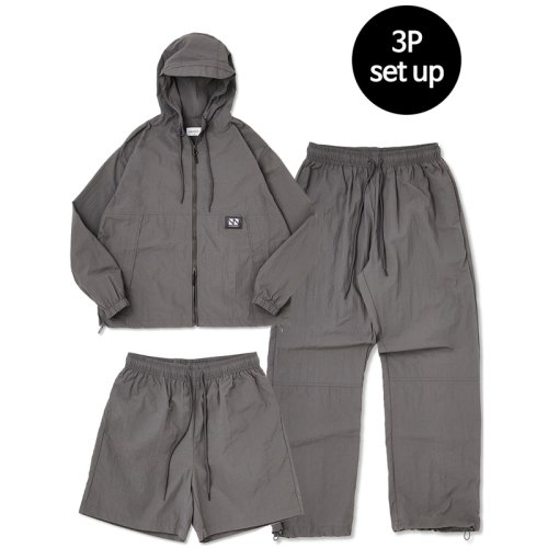 Hoodie Zip Up 3-Piece Full Set Up (Charcoal) CSOs-002 [Unisex]