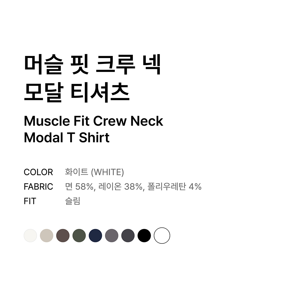 머슬 핏 크루 넥 모달 티셔츠 [화이트]