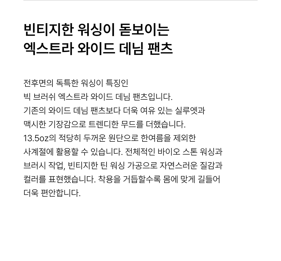 빅 브러쉬 엑스트라 와이드 데님 팬츠 [러스티 블랙]