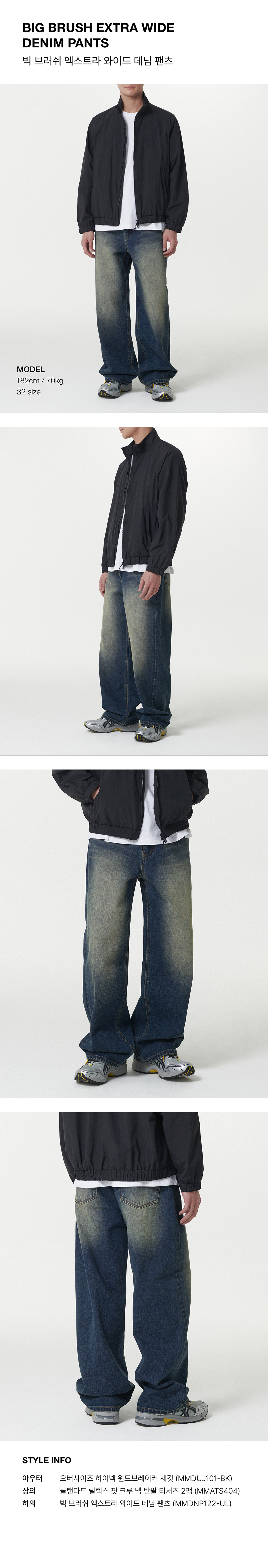 빅 브러쉬 와이드 데님 팬츠 [블랙]