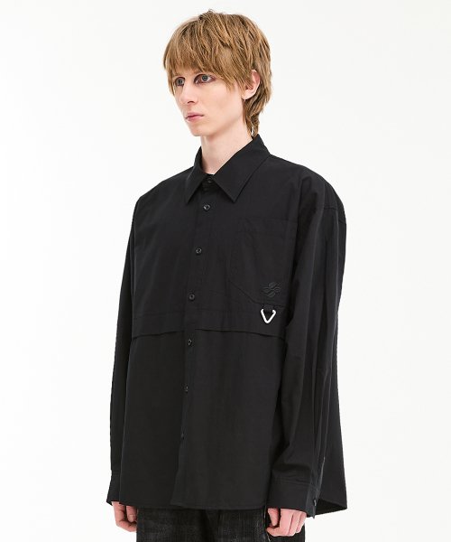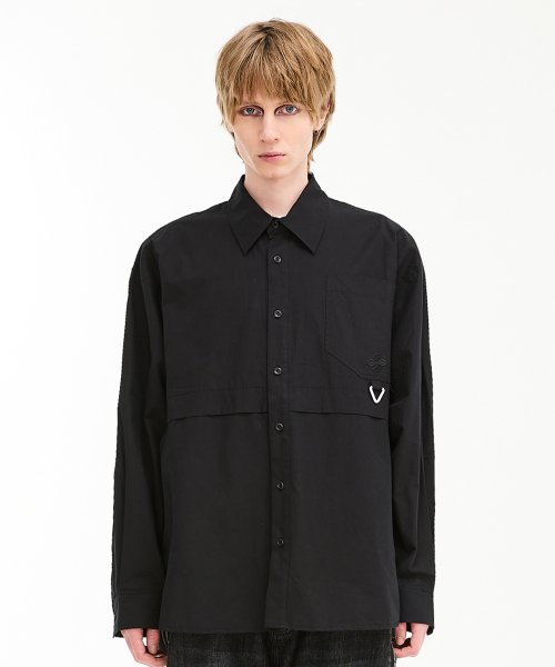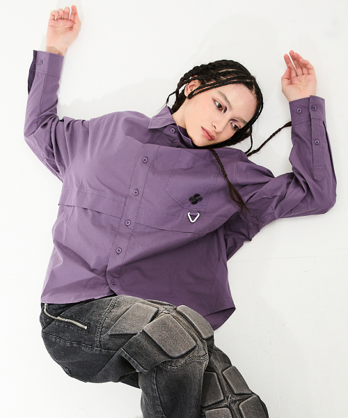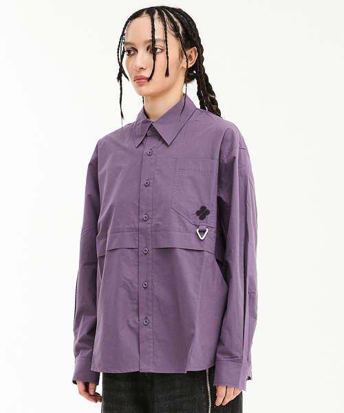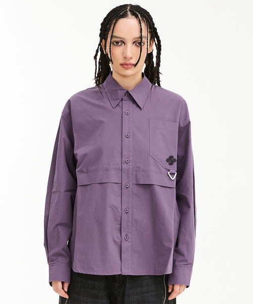 멀티 포켓 유틸리티 코튼 셔츠 퍼플