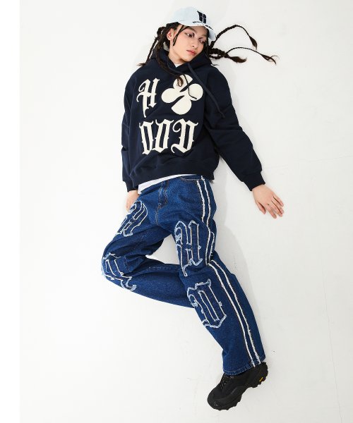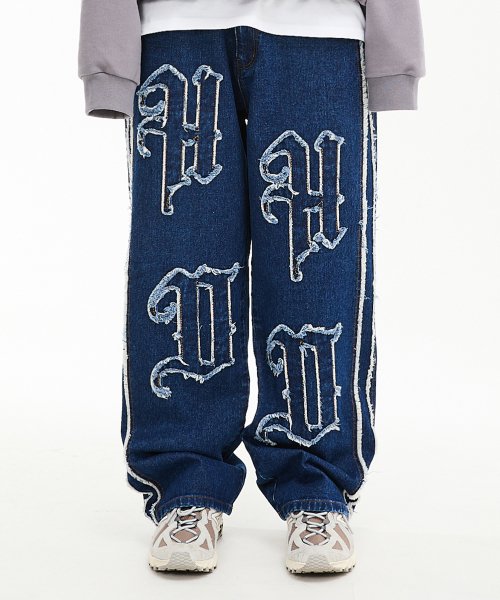 HD 아플리케 와이드 데님 팬츠 미디엄블루
